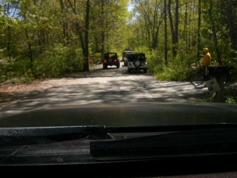 This is the trailhead at the beginning of Pachaug State Forest. Here we waited until everyone arrived. There are a minimum of 26 Jeeps per trail.