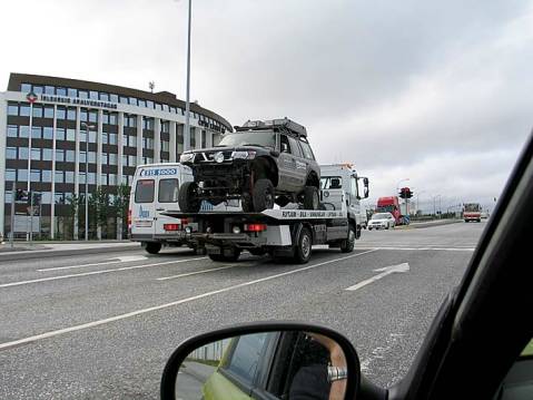 On its way back to the modification shop after the fender sheet metal cutting.