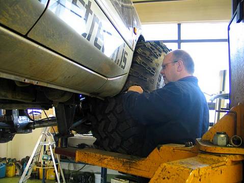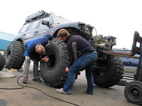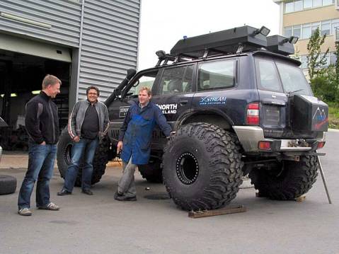 Aegir and Oskar try on the 49 inch tires. Making it possible to measure fender flares size and positions and other things.