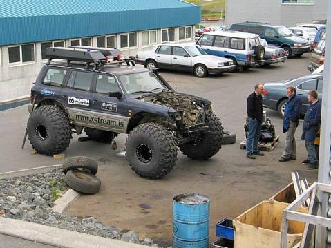 Larus Arnason (from Kistufell), also known as Lalli Diesel, rebuilt a 6.5 liter engine. Changing all bearings, pistons and with lower pressure. Both heads are brand new and everything in them, valves and stuff. Also the fuel delivery system is new and improved.