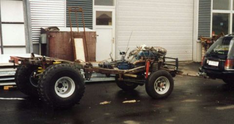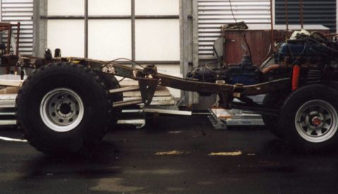 Rear axle moved back 14 cm (about 5") and a four link suspension built.