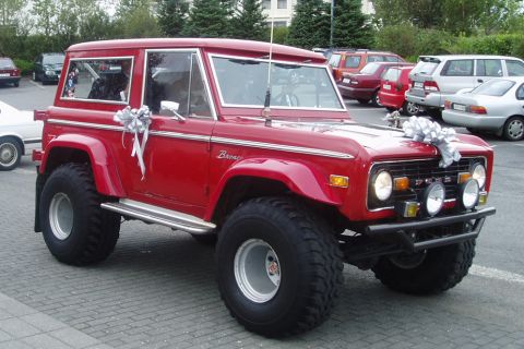 A fully restored and modified 4x4 Ford Bronco 1974 can be used for the finest occasions - even a wedding.