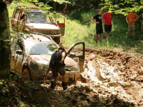 Lucky enough, I had the chance to see the Dacias in action on one of the Transylvania Trophy hotspots where deep mud, a difficult descent and a particularly strange and difficult ravine did wonders on cars' body parts. However, the small ultra-light Dusters had no problems although the winch had to be used every now and again - thinking now of the powerful WARN winch that the cars were equipped with, it came as no surprise that the winching process was an easy task. Right after the Dusters passed, followed by a Finnish team, the deep mud posed extreme problems for the rest of the competitors. Two burned winches on a tray back G Wagon and on a Toyota HDJ 80 clogged the only two passages where competitors could pass so alternative and more difficult routes had to be found. And now, because there is only so much a reporter can do, we asked the copilot of one of the cars, Mr. Marian Marin, to tell us a little more about the problems and adventure they encountered during this one week competition.