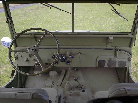 The magnificent dashboard! All the luxury stuff like manually operated wipers, three gears, the first one unsynchronized. The small handle closer to the driver is for engaging the front drive. The other handle changes between high, nautral and low.