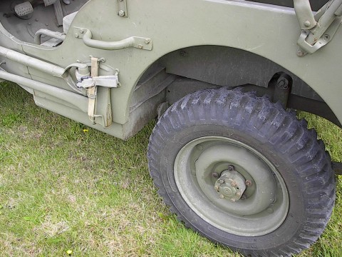 The tires are somewhat smaller than today's trend!The recently retired owner has for the past years used his spare time restoring this GPW. The engine is a four cylinder flat head Ford with a 6 volt electrical system.