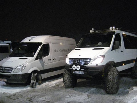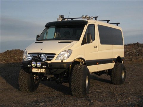 After using the converted Sprinter for a while and asked about the fuel economy, Pall is pretty happy: "With an average of 16 liters/100 km I can't complain". Compared to the massive size and space the Sprinter offers as well as the tire size this is really surprising.
