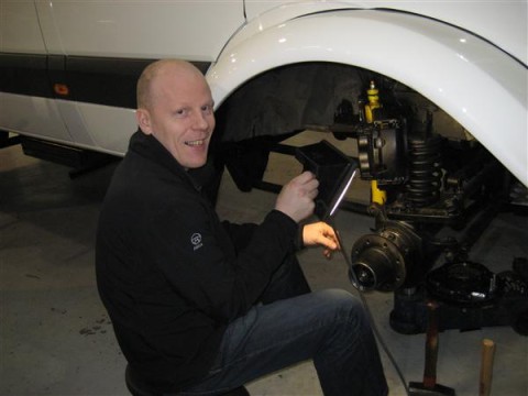 Pall Halldorsson himself working on the Sprinter conversion.
