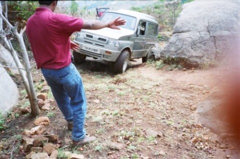 Suzuki-Samurai (Gypsy in India), 1000 cc engine, petrol powered, with body modification done by DC (Dilip Chhabria), one who designed Aston Martin for the Bond movie Tomorrow Never Dies.